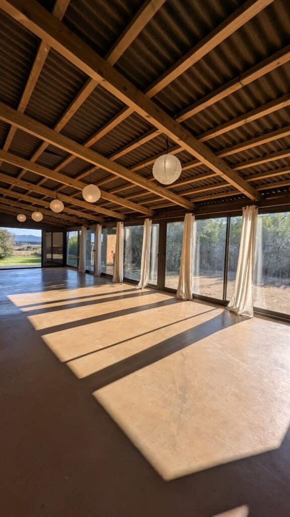 Espais amplis i versàtils, llum natural, materials nobles i un entorn exterior que convida al silenci i la presència.